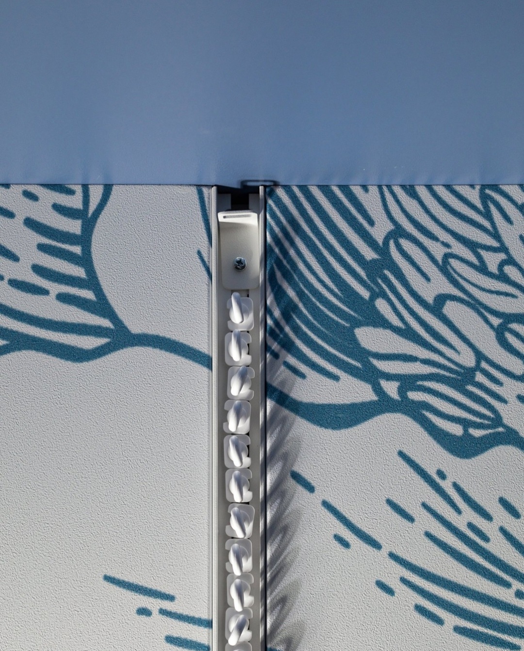 Карниз монтируется в один уровень с потолком и все детали крепления полностью скрыты. Ширина профиля 17 мм., совместим с ПВХ и тканевыми полотнами.